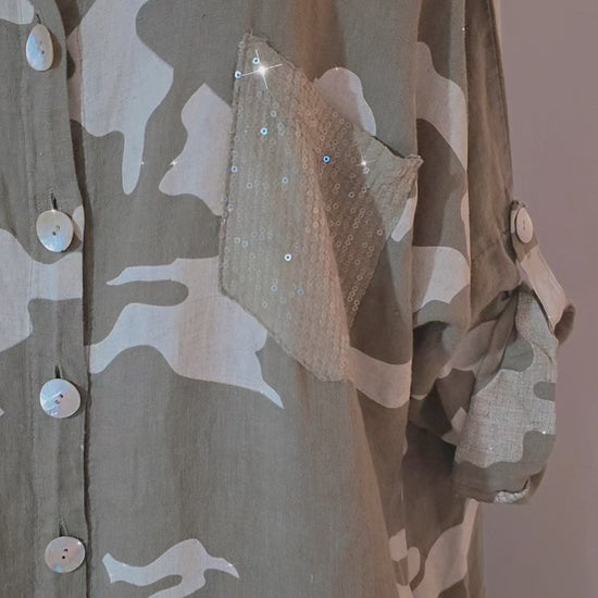 Adela Puro Lino Green Camo Dress